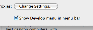 Safari 5 has an easy built in User agent switcher, to activate you need go into options\preferences – under the advanced tab there is a mysterious check box that says”Show developer menu in menu bar”